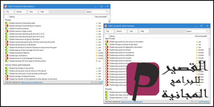 برنامج حمايه الخصوصيه والامان في ويندوز 10 مجانا Shutup10 2020